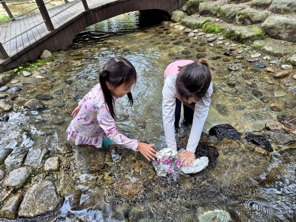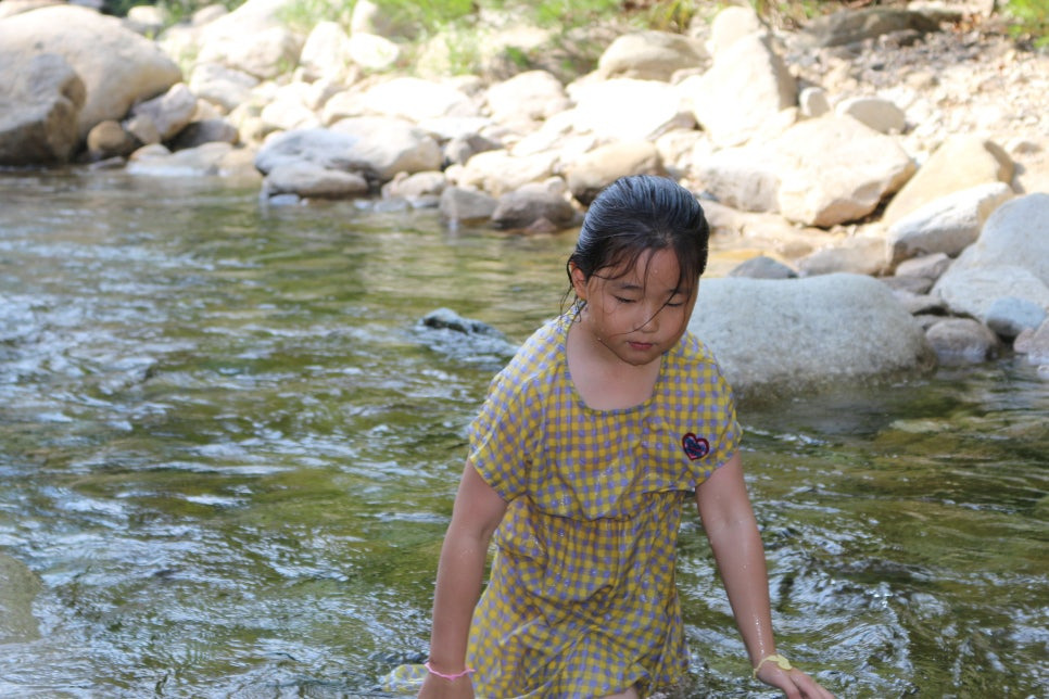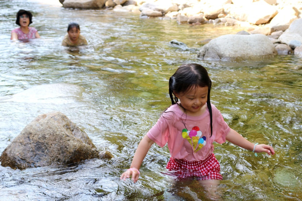 채 말이 끝나기도 전에 우리 병아리들이 풍덩 하고 계곡물에 뛰어든다.