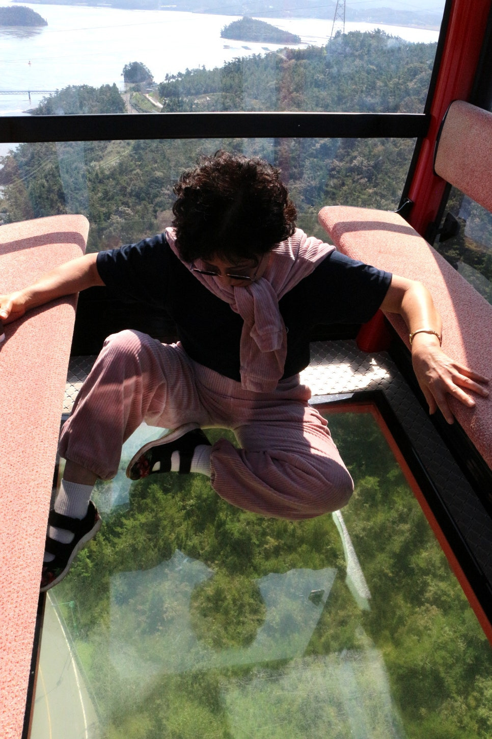 그런데 기념관이고 뭐고.......... 연실 눈앞에 아른거리듯 오고 가는 케이블카가 영 거슬린다. 여러 여행 잡지나 방송이나 SNS에서 수도 없이 등장했던 바로 그 문제의 케이블카다. 뭐라더라? 바닥이 뚫렸다고? 바닥이 뚫린 채 울돌목 바다를 건너간다고?