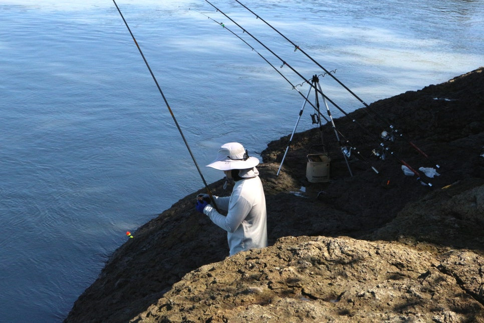다큐멘터리에서 울돌목에서 뜰채로 민어를 잡아 올리던 어부의 기사를 보아서 찾아갔더니만, 시즌이 이미 지나서 휴업중이란다. 다들 우리같은 호기심으로 꾸준히 찾아들 오고 계신 데 다들 허탕을 치고 돌아간다. 어부는 물살을 살피면 민어가 헤엄치는 것이 보인다고 했는데........ 아무리 들여다보고 또 들여다 보이도 그냥 세차게 부딪혀 산산이 부서지는 하얀 포말뿐이다. 그 어부의 민어 사냥터 안쪽에 한 젊은 여성 조사가 낚시를 하고 계셨는데 그 던지는 폼에서 뿜어져 나오는 아우라가 가히 환상적이다.